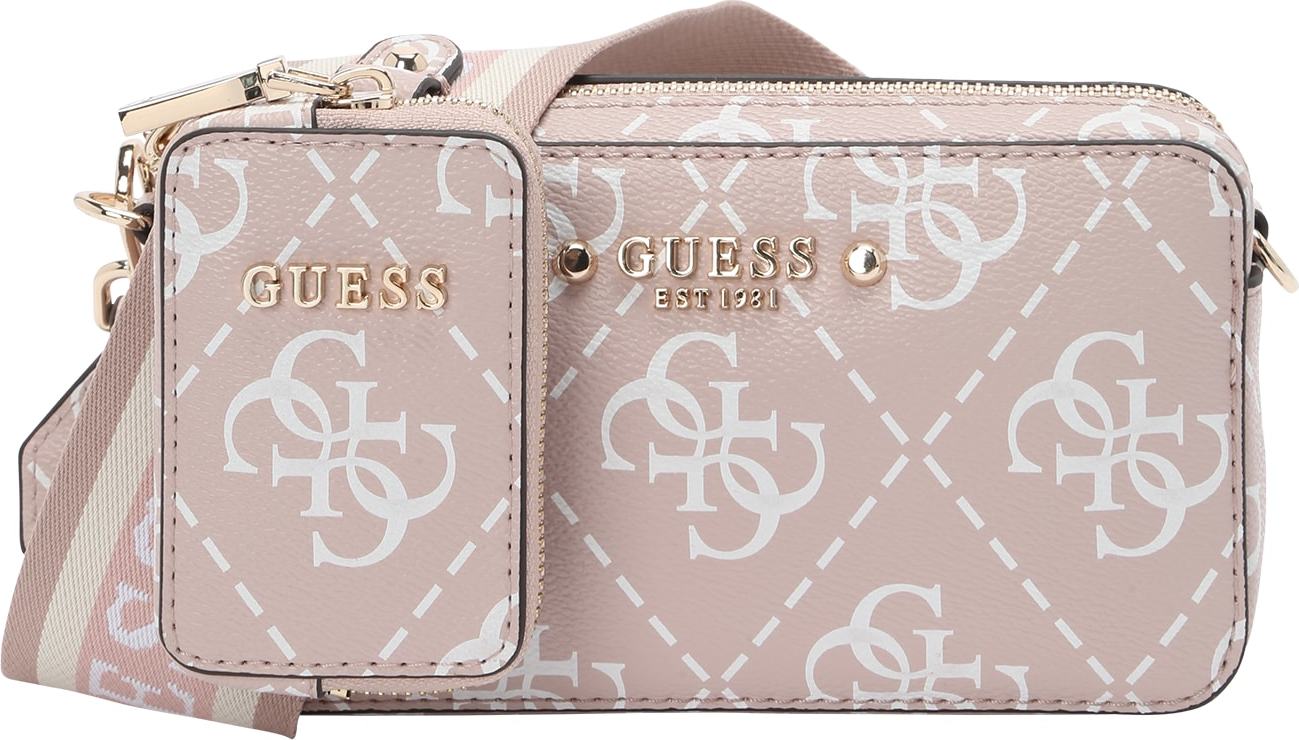 GUESS Taška přes rameno 'REA' růže / bílá od známého výrobce Guess - tento produkt dodáváme s unikátní slevou za 2879 Kč. Výhodné ceny máme pro všechny zákazníky. Naplníte-li košík zbožím nad , dopravu až k vám domů máte ZDARMA. Jsme si jistí, že toto ocení nejeden zákazník.