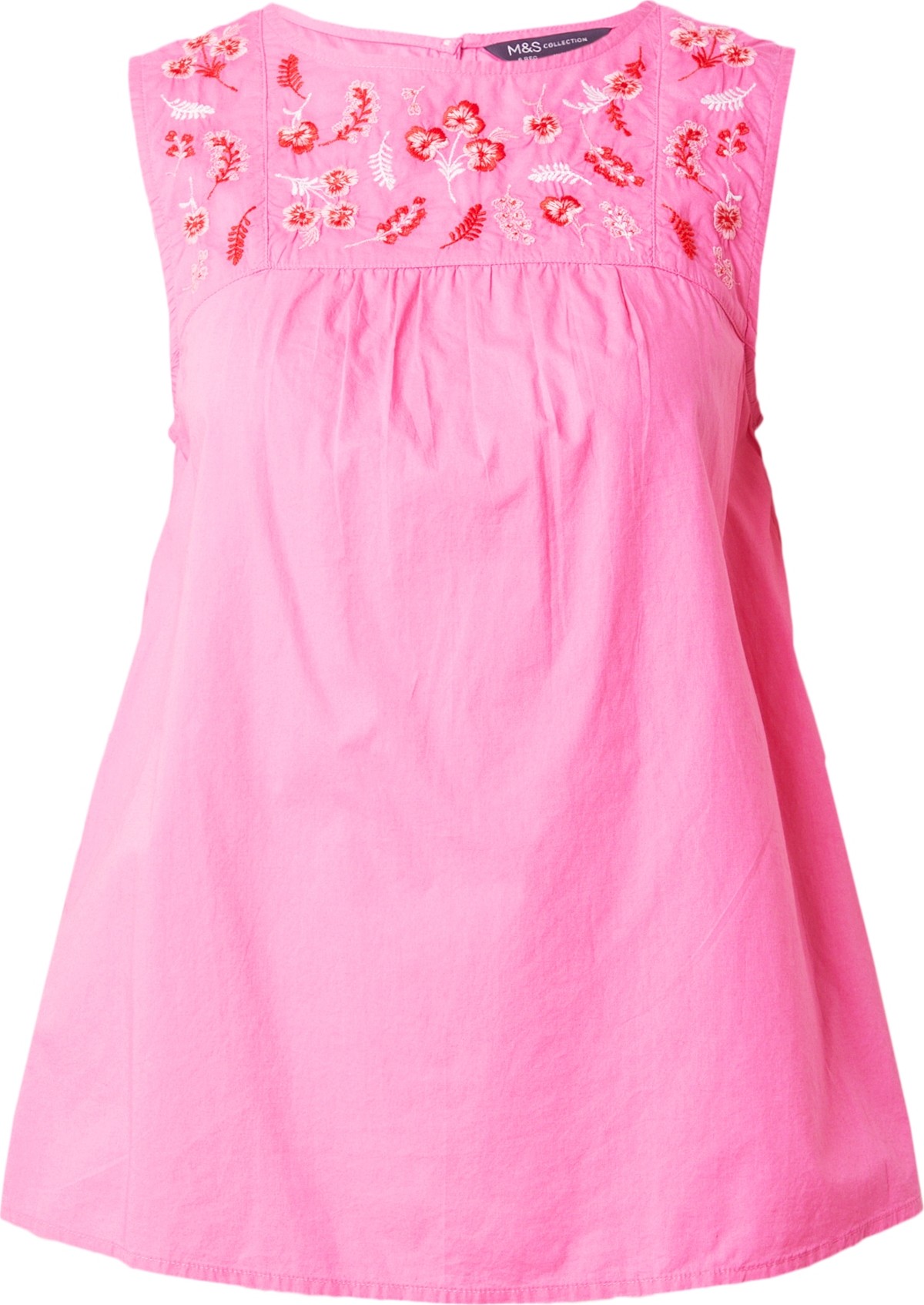 Styl halenky: Halenkové tričko; Design: Prošitý spodní lem, Áčková linie, Rovný lem, Zapínání za krkem; Typ uzávěru: Knoflíkové zapínání; Materiál: Bavlna; Vzor: Květovaný; Košilový límec: Bez límečku; Detaily: Prostřihy, Výšivka, Nařásněné; Extra: Švy tón v tónu, Měkký povrch; Střih: Normální střih; Délka rukávu: Bez rukávů; Délka: Normální délka