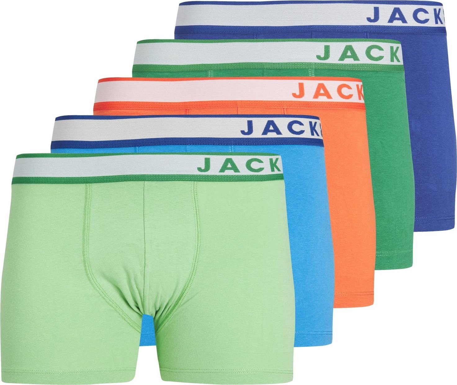 Popis produktu JACK & JONES Boxerky 'Eland' modrá / marine modrá / světlemodrá / světle zelená / oranžová