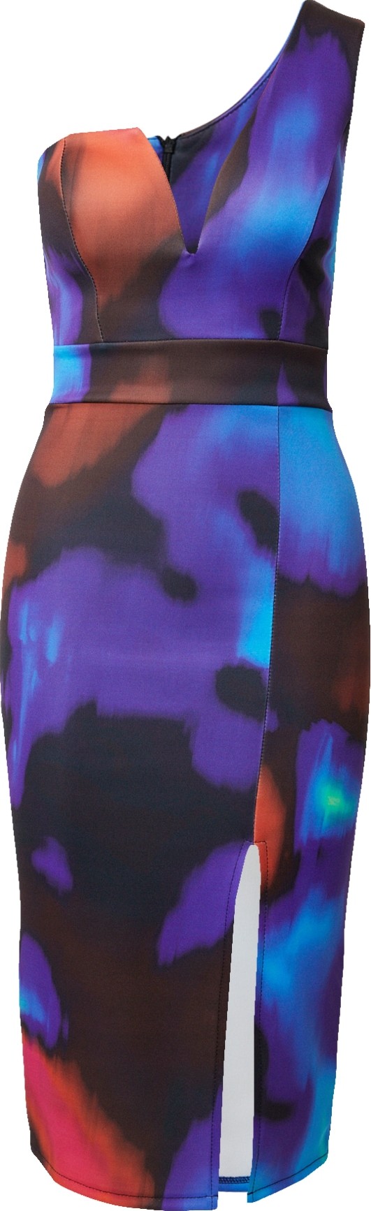 Design: Prošitý spodní lem, Rozparek, Zadní zip; Typ uzávěru: Zip; Druh ramínka: Na jedno rameno; Extra: Celoplošný vzor, Měkký povrch; Délka: Ke kolenům; Střih: Postavu zvýrazňující střih; Délka rukávu: Bez rukávů