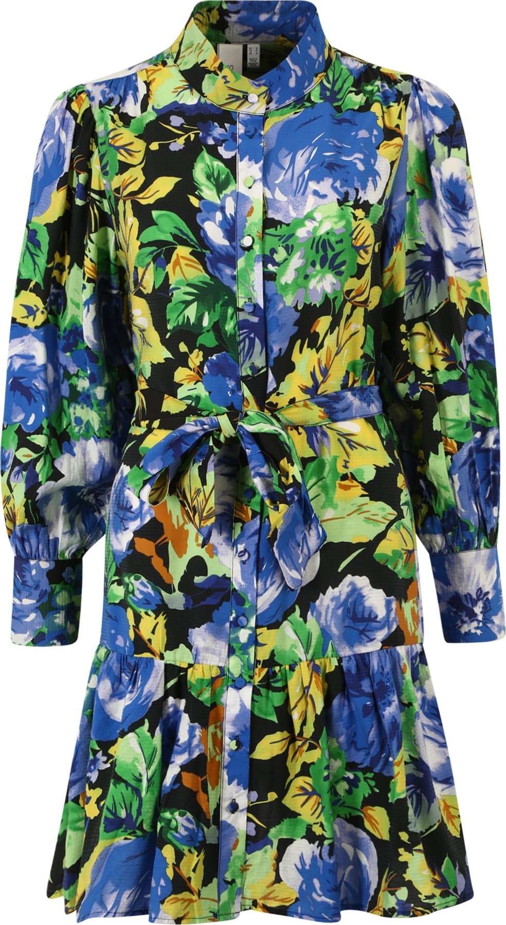 Design: Prošitý spodní lem, Nabírané rukávy, Opasek v pase, Rukány na knoflíky; Typ uzávěru: Knoflíkové zapínání; Materiál: Viskóza; Vzor: Květovaný; Košilový límec: Stojáček; Udržitelnost materiálu: Viskóza LENZING™ ECOVERO™*; Detaily: Volán, Nařásněné; Extra: Celoplošný vzor, Splývavá látka; Délka: Krátká/mini; Střih: Normální střih; Délka rukávu: Dlouhý rukáv