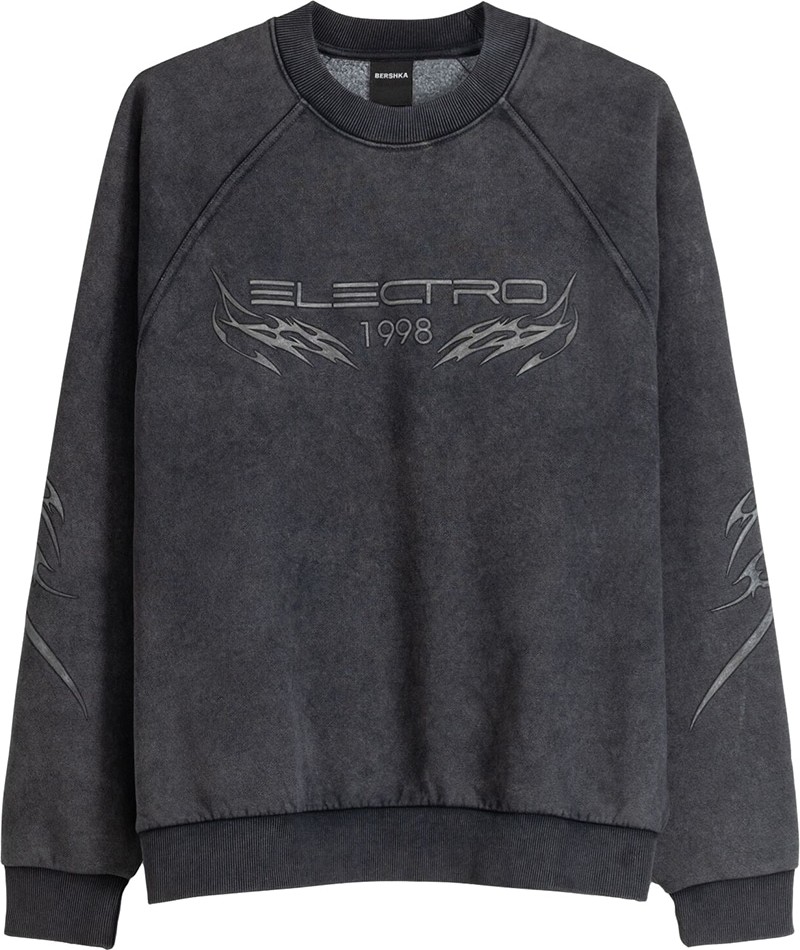 Design: Pružný límec, Raglánové rukávy, Žebrovaný okraj, Prošitý límec; Materiál: Teplákovina; Výstřih: Kulatý výstřih; Vzor: S nápisem; Extra: Švy tón v tónu, Efekt oprání, Měkký povrch; Střih: Volný střih; Délka rukávu: Dlouhý rukáv