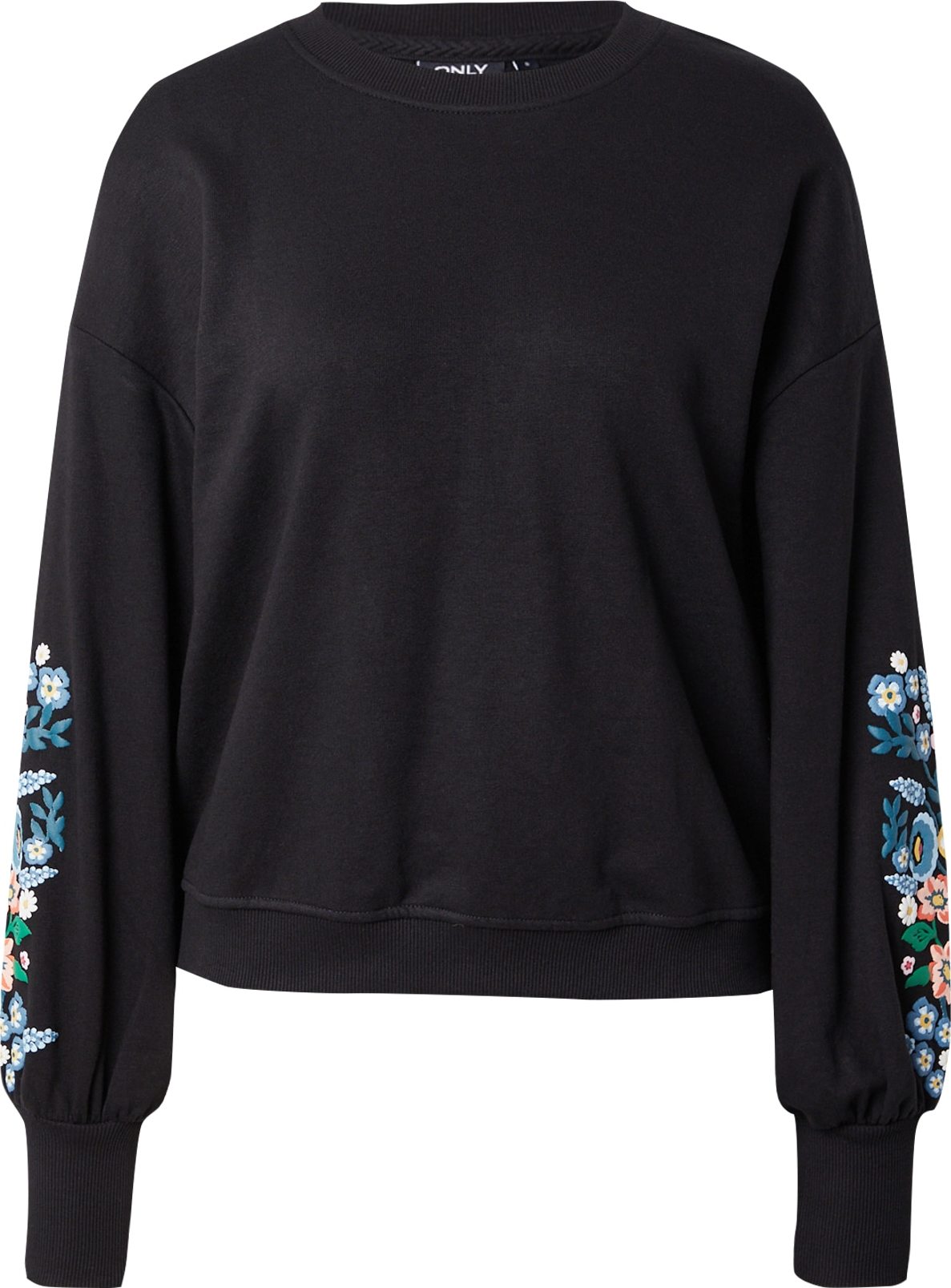 Design: Žebrovaný okraj; Materiál: Teplákovina; Výstřih: Kulatý výstřih; Vzor: Květovaný; Detaily: Výšivka; Extra: Měkký povrch; Střih: Volný střih; Délka rukávu: Dlouhý rukáv; Délka: Normální délka