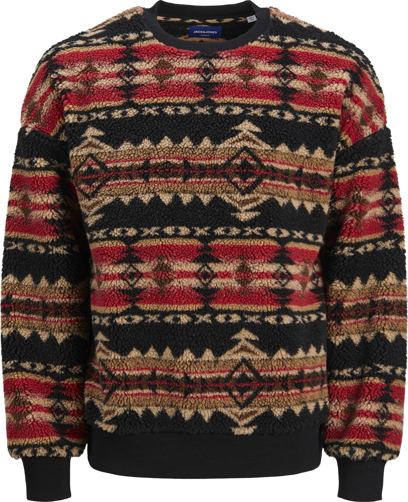 Design: Pružný límec, Žebrovaný okraj, Popuštěná ramena, Prošitý límec; Výstřih: Kulatý výstřih; Vzor: Etno vzor; Extra: Celoplošný vzor, Strukturovaný povrch; Střih: Volný střih; Délka rukávu: Dlouhý rukáv