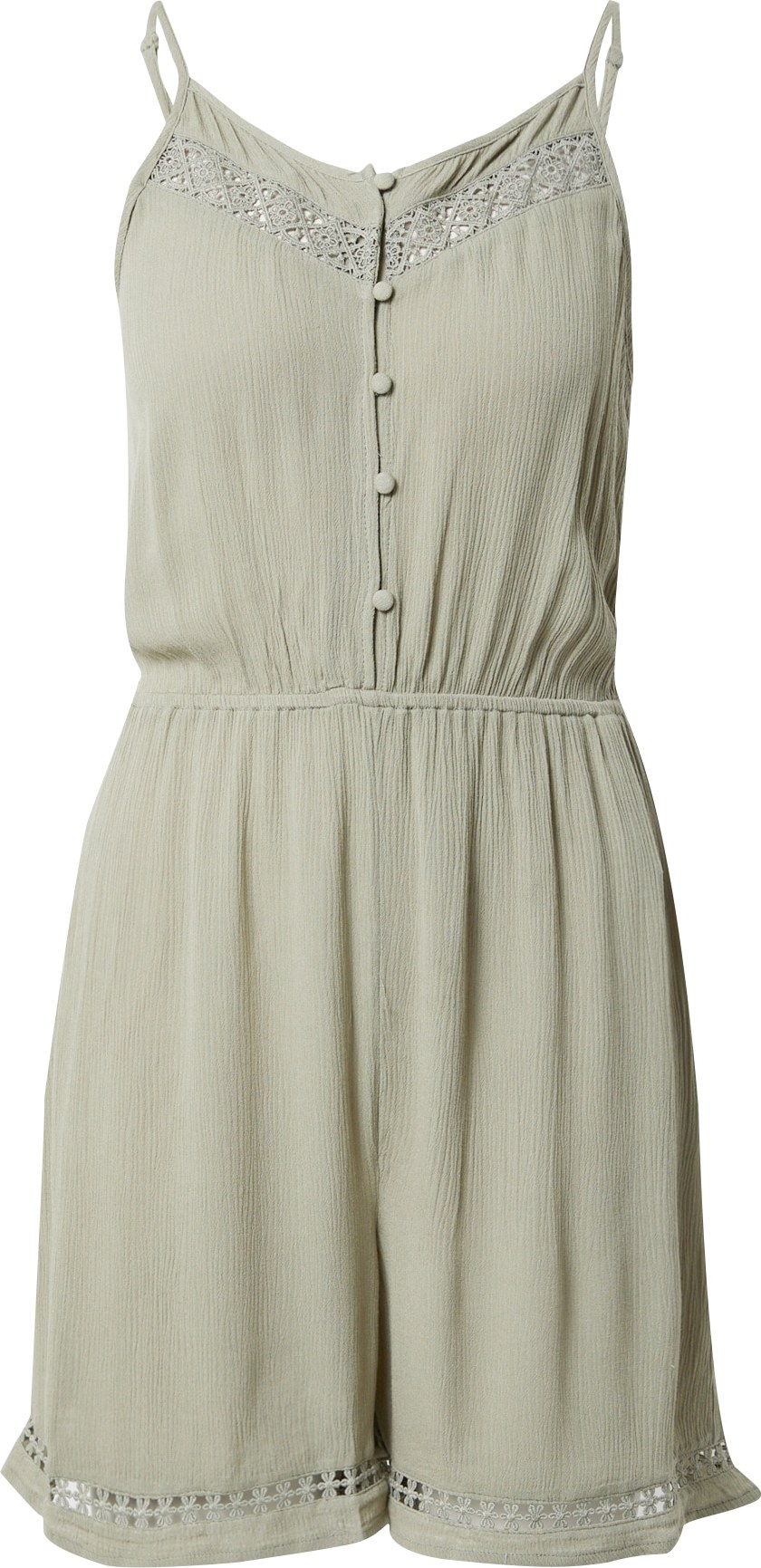 Design: Elastický pas/okraj, Léga na knoflíky, Lemovaný výstřih; Typ uzávěru: Knoflíkové zapínání; Materiál: Viskóza; Výstřih: Výstřih do V; Vzor: Jednobarevný; Druh ramínka: Úzká ramínka; Udržitelnost materiálu: Viskóza LENZING™ ECOVERO™*; Detaily: Krajka, Nařásněné, Děrované; Extra: Nastavitelná ramínka, Švy tón v tónu, Splývavá látka, Potažené knoflíky; Délka: Krátká/mini; Střih: Normální střih; Délka rukávu: Bez rukávů