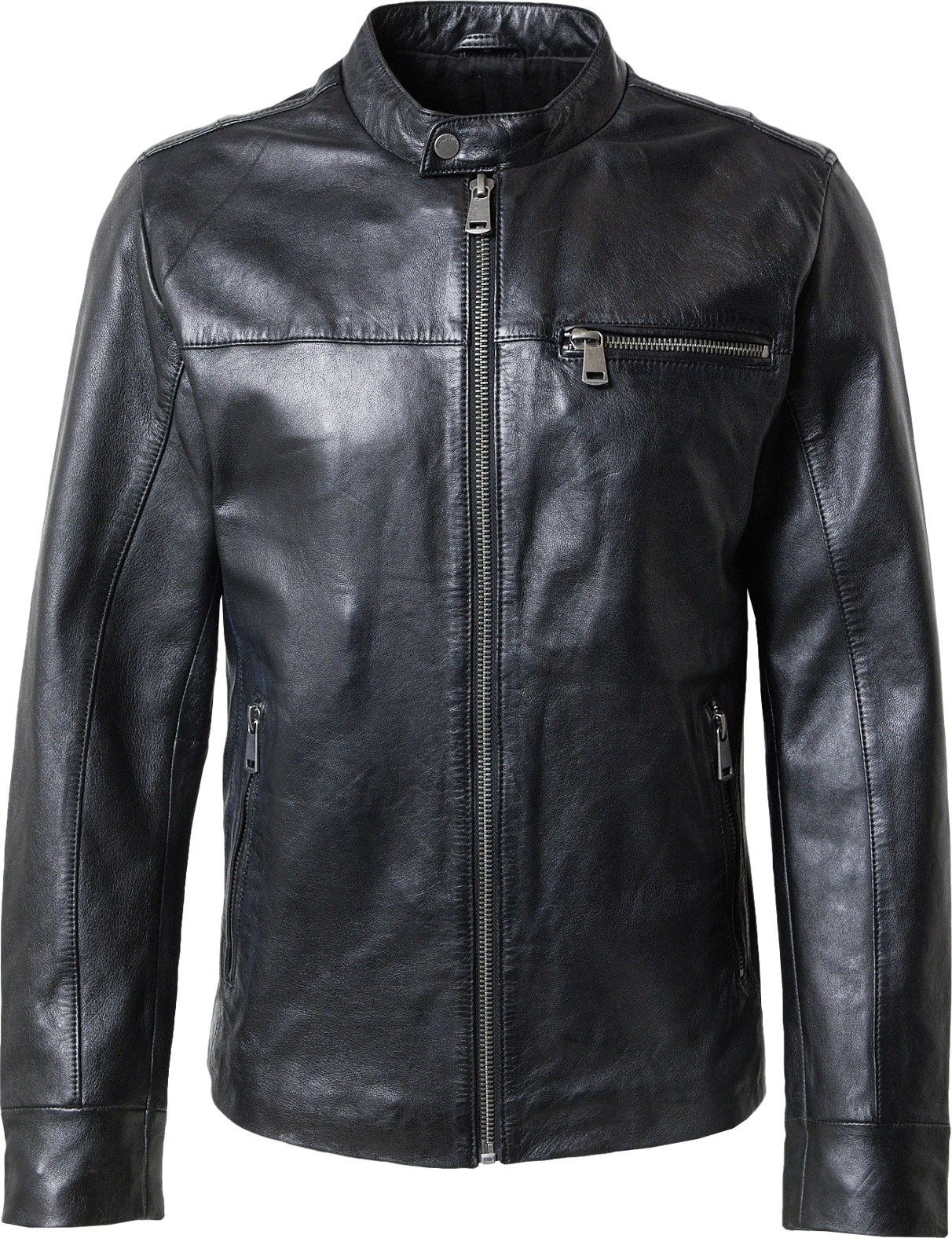 Design: Přeložený límec, Náprsní kapsa, Boční kapsy na zip; Typ uzávěru: Zip; Podšívka: Lehce podšitá; Materiál: Kůže; Vzor: Jednobarevný; Extra: Švy tón v tónu, Robustní látka; Střih: Normální střih