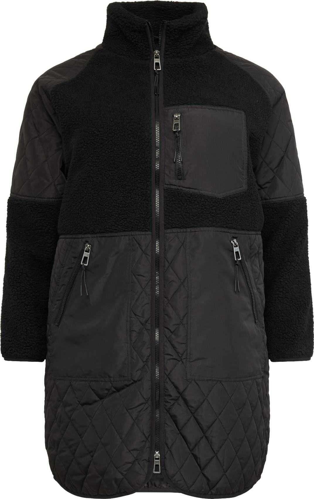 Design: Spodní lem, Raglánové rukávy, Dvoucestný zip, Náprsní kapsa, Boční kapsy na zip, Mix materiálů; Typ uzávěru: Zip; Podšívka: Lehce podšitá; Materiál: Fleece; Vzor: Jednobarevný; Extra: Prošívání, Švy tón v tónu, Strukturovaný povrch; Střih: Volný střih; Délka rukávu: Dlouhý rukáv; Délka: Normální délka