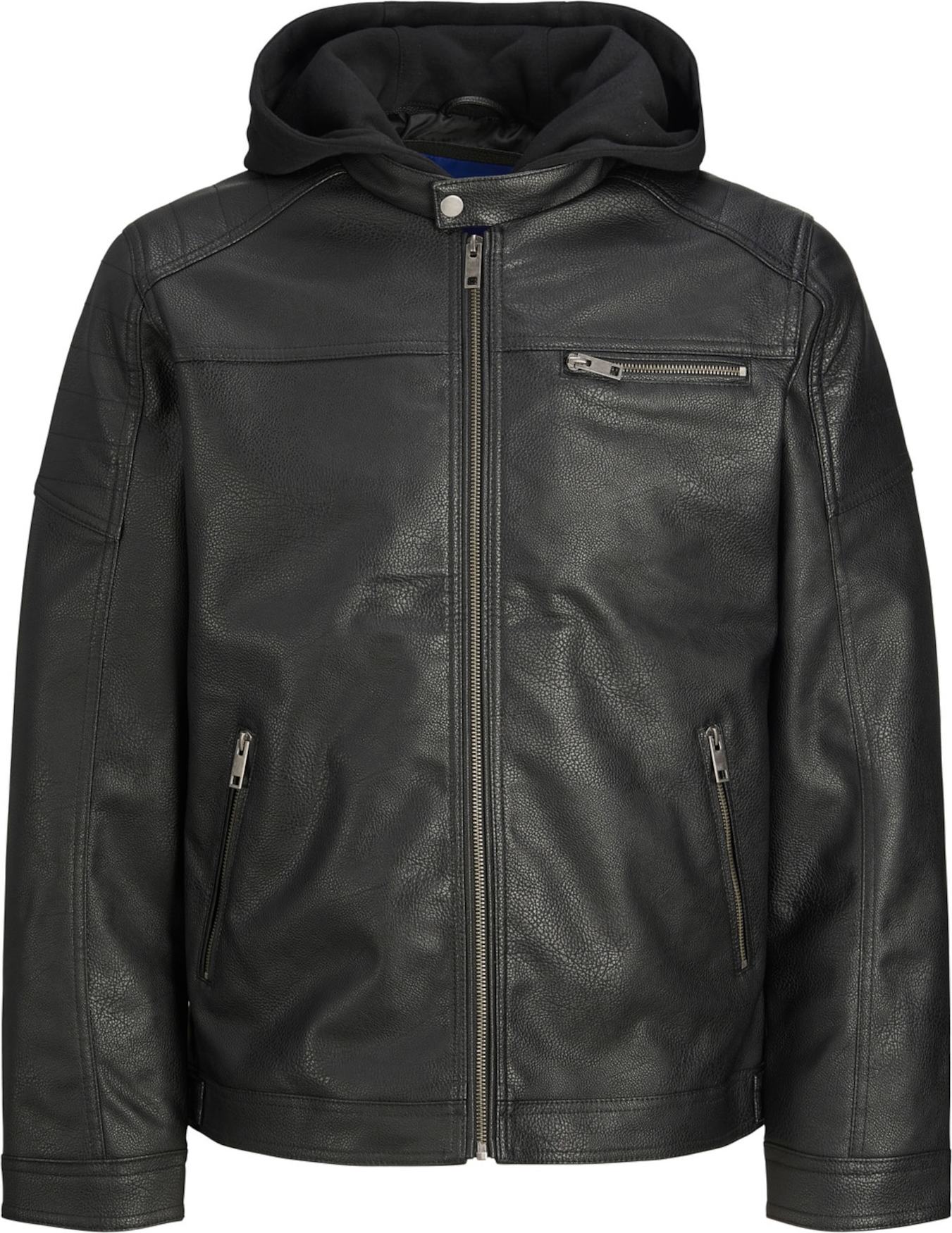 Design: Rovný lem, S kapucí, Náprsní kapsa, Kapsa na zip, Boční kapsy na zip; Typ uzávěru: Zip; Druh bundy: Biker bunda; Podšívka: Lehce podšitá; Materiál: Imitace kůže; Vzor: Jednobarevný; Extra: Reliéfní struktura, Švy tón v tónu, Těžká látka; Střih: Normální střih