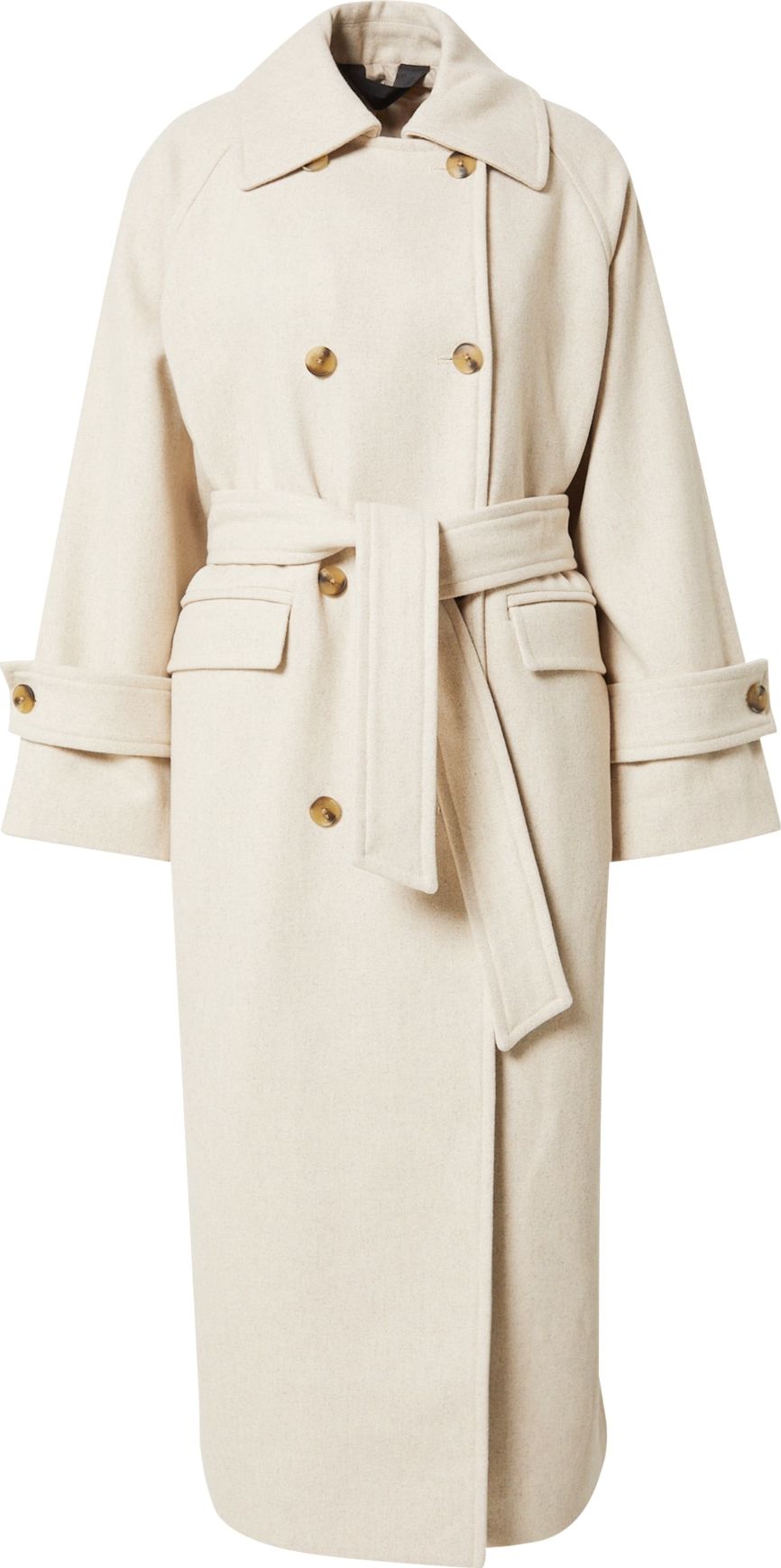 Druh kabátu: Klasický kabát; Design: Límec s klopami, Patkové kapsy/kapsy s klopami, Opasek v pase, Rukány na knoflíky; Typ uzávěru: Knoflíkové zapínání; Podšívka: Lehce podšitá; Materiál: Vlna; Vzor: Melír; Extra: Švy tón v tónu, Poutka na pásek; Střih: Normální střih; Délka: Dlouhý střih