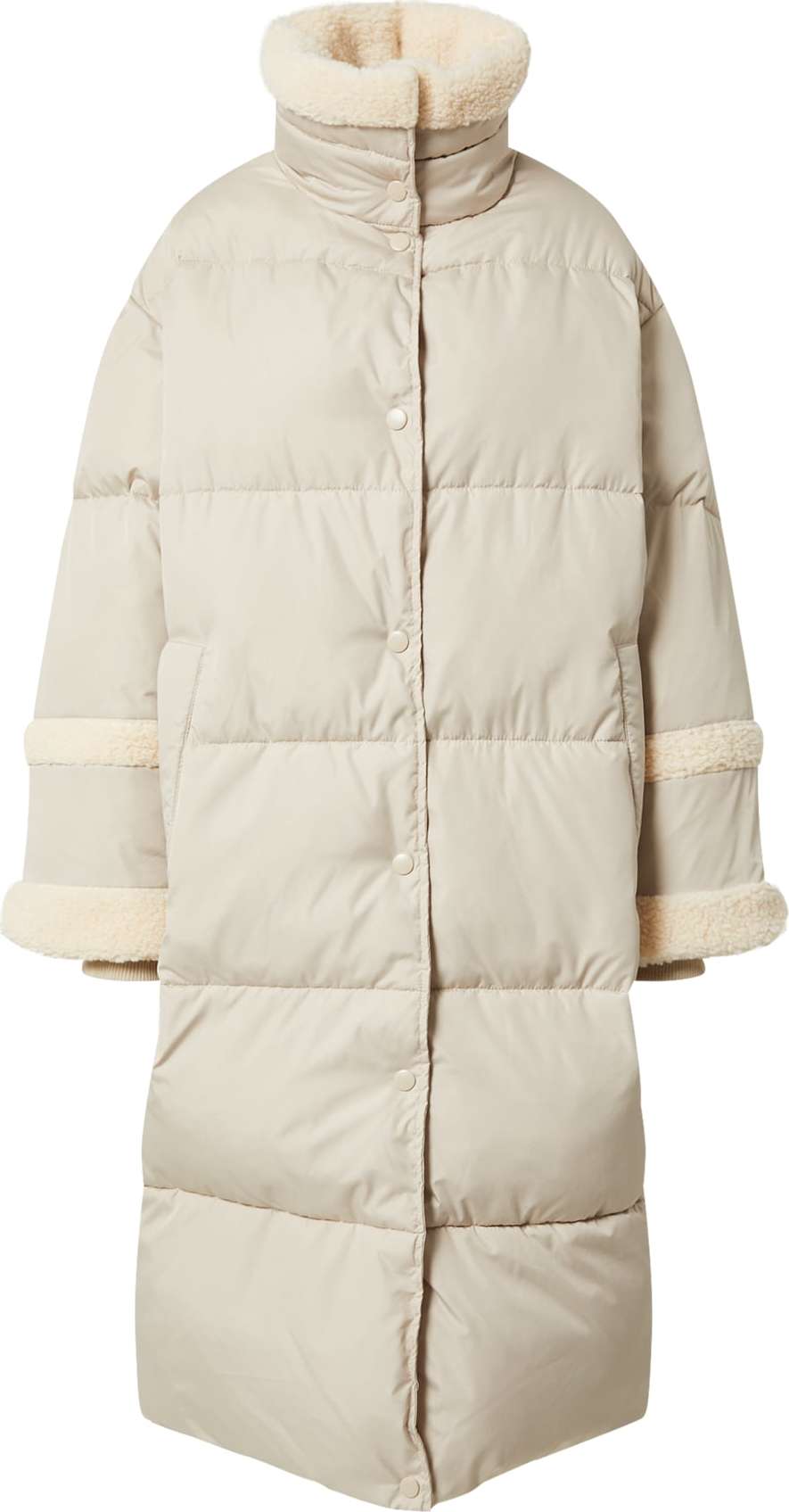 Druh kabátu: Prošívaný kabát; Design: Patentky, Žebrovaný okraj, Stojáček, Boční průhmatové kapsy, Mix materiálů; Typ uzávěru: Tlačítko; Podšívka: Lehce podšitá; Vzor: Jednobarevný; Udržitelnost materiálu: Recyklovaný polyester; Extra: Švy tón v tónu, S lemem z umělé kožešiny, Robustní látka; Střih: Normální střih; Délka: Normální délka