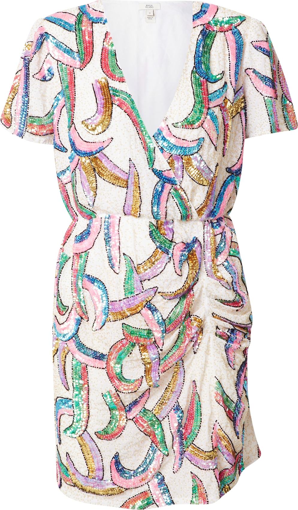 Popis produktu River Island Šaty zlatá / zelená / pastelová fialová / bílá