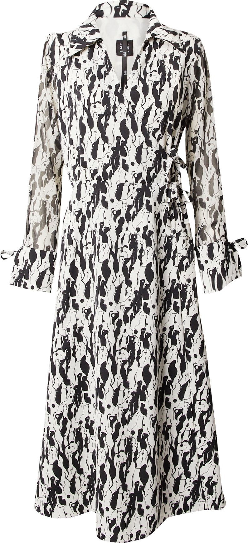 Design: Prošitý spodní lem, Rovné manžety, Vysoký pas, Přeložený límec, Na uzel/zavázání; Výstřih: Výstřih do V; Detaily: Nařásněné, Zavinování; Extra: Celoplošný vzor, Švy tón v tónu, Splývavá látka; Délka: 3/4 délka; Střih: Normální střih; Délka rukávu: Dlouhý rukáv