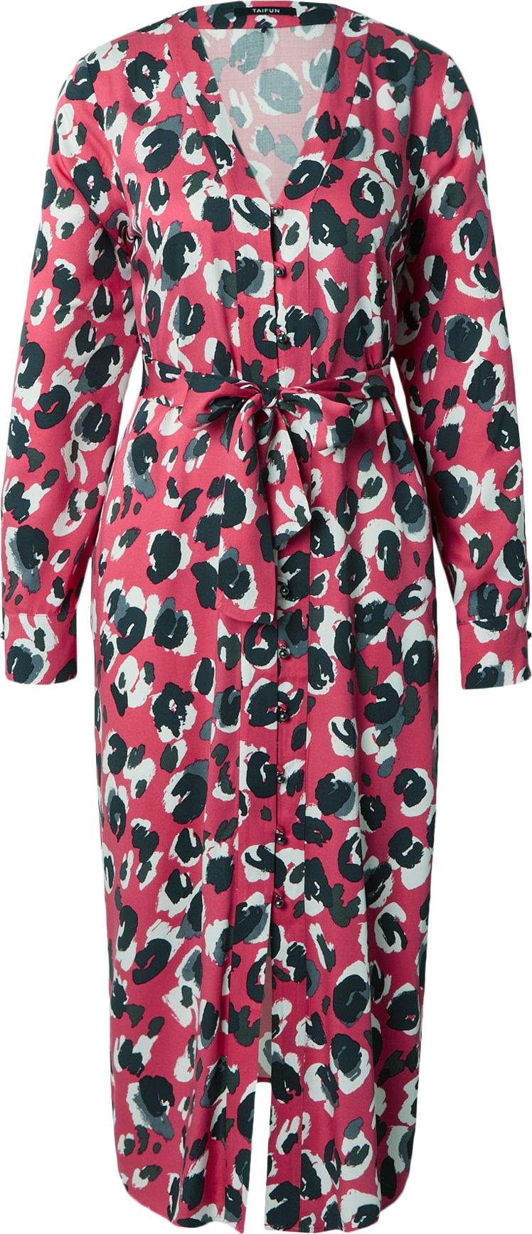Design: Prošitý spodní lem, Vysoký pas; Typ uzávěru: Knoflíkové zapínání; Materiál: Viskóza; Výstřih: Výstřih do V; Udržitelnost materiálu: Viskóza LENZING™ ECOVERO™*; Extra: Celoplošný vzor; Délka: 3/4 délka; Střih: Normální střih; Délka rukávu: Dlouhý rukáv