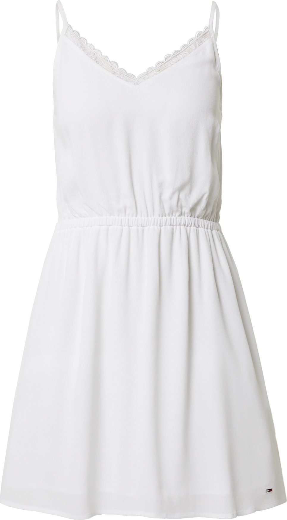 Design: Prošitý spodní lem, Rozšiřující se střih, Rovný lem, Vysoký pas; Materiál: Viskóza; Výstřih: Výstřih do V; Vzor: Jednobarevný; Druh ramínka: Úzká ramínka; Detaily: Krajka, Výšivka, Nařásněné; Extra: Nastavitelná ramínka, Výšivka loga, Švy tón v tónu, Měkký povrch; Délka: Krátká/mini; Střih: Normální střih; Délka rukávu: Bez rukávů