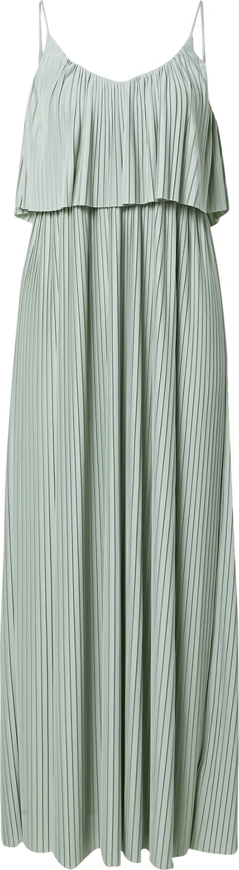Materiál: Satén; Výstřih: Výstřih do V; Vzor: Jednobarevný; Druh ramínka: Úzká ramínka; Udržitelnost materiálu: Recyklovaný polyester; Detaily: Volán, Plisování; Délka: Dlouhé / Maxi; Střih: Normální střih; Délka rukávu: Bez rukávů