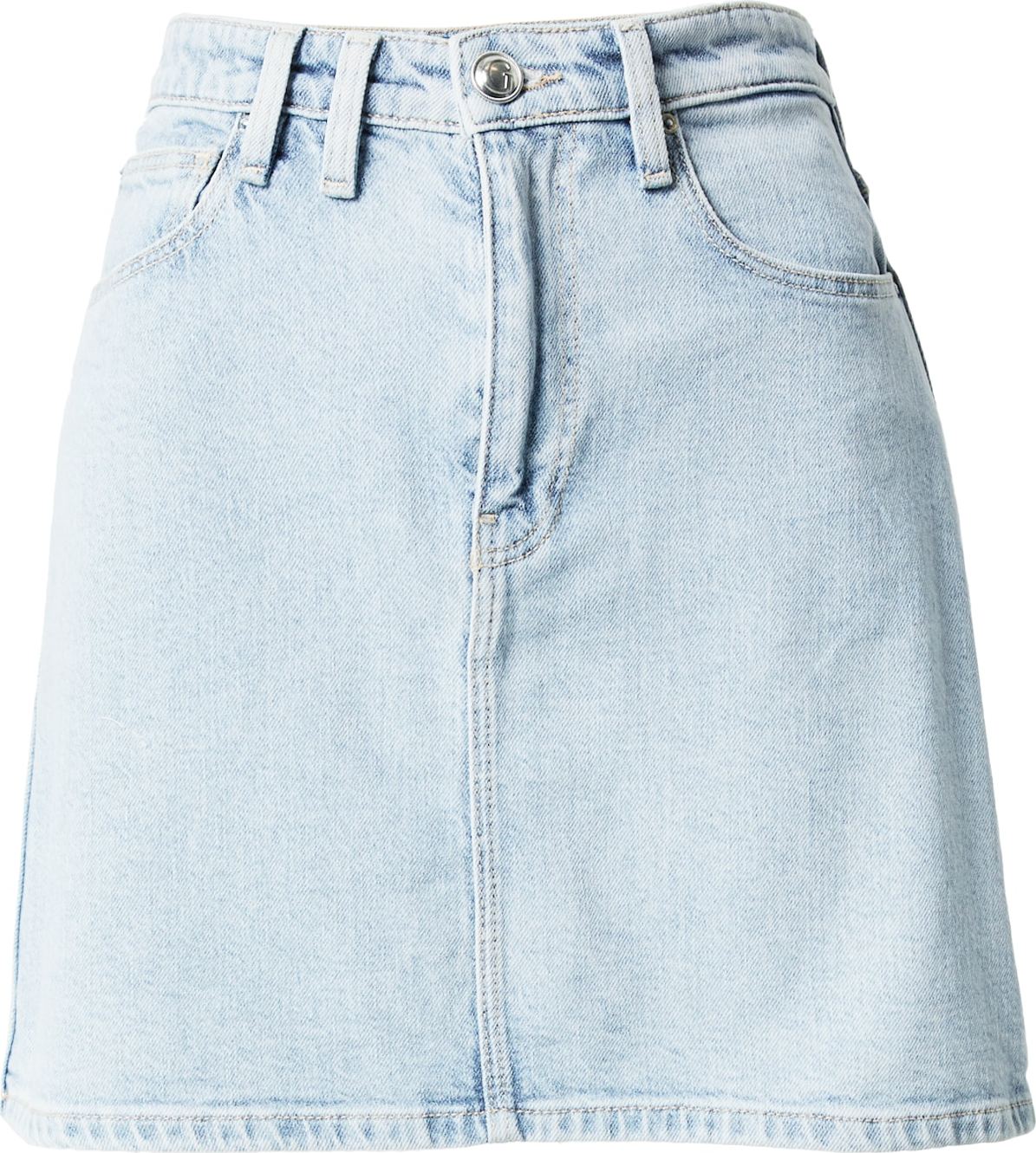 Design: Prošitý spodní lem, Rovný lem, Jezdec na zip; Materiál: Džínovina; Vzor: Jednobarevný; Tvar sukně: Sukně áčkového střihu; Extra: Poutka na pásek; Délka: Krátká/mini; Střih: Normální střih
